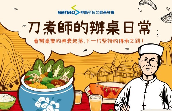 「辦桌」是台灣特有的飲食文化,最早是從民間練習陣頭時的「湯飯」發展而來,隨著時代進步民生經濟富裕,而後演化成露天喜宴、壽宴上一道道手路菜,在70、80年代極為興盛,是過往台灣人的成長記憶,也象徵經濟起飛的年代,而台語稱辦桌師傅為「刀煮」,後面會加上師,作為尊稱,顧名思義不僅刀工要好,料理技術也要好,也有人稱為「總舖師」!