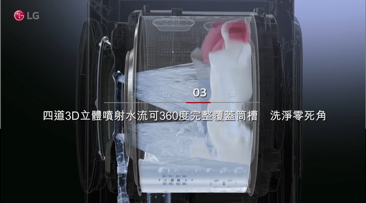 傳統的滾筒洗衣機最令人困擾的就是「洗衣時間」,動輒就要1小時起跳。但是 LG 的蒸氣滾筒洗衣機 (WD-S13VDW) 有「TurboWash™ 360˚ 勁速洗」功能,與一般洗衣機僅有「1清1洗」的「快洗」功能不同,勁速洗是利用強勁的四道噴柱水流,在 39 分鐘內完成完整的「1洗2清」行程,徹底洗淨衣服的同時也能減少耗水量與耗電量,還能保護衣物。