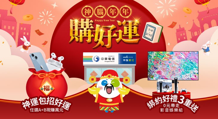 迎接新的一年到來,有攜碼、新辦、續約需求的消費者來神腦門市可享好禮3重送,第一重-指定機款最高折3,000元;第二重-神腦加碼回饋精品小家電;第三重-申辦精采Fun生活方案,影音娛樂組0元帶回家!全台神腦門市從小年夜1月20日起將開賣限量「購神福袋」(888元、1688元),最大獎為iPhone 14 Plus 128G(價值31,900元),還有三星Galaxy Buds2 Pro 真無線藍牙耳機 (價值7,490元)、PHILIPS 40吋電視(價值8,888元)、CHIMEI 4L多功能電火鍋蒸烤盤(價值3,288元)等3C商品,袋袋有獎,怎麼買都超值!