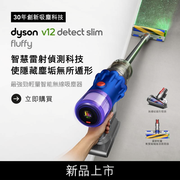 👉 Dyson V12 Detect Slim Fluffy 智慧雷射吸塵器 銀灰
