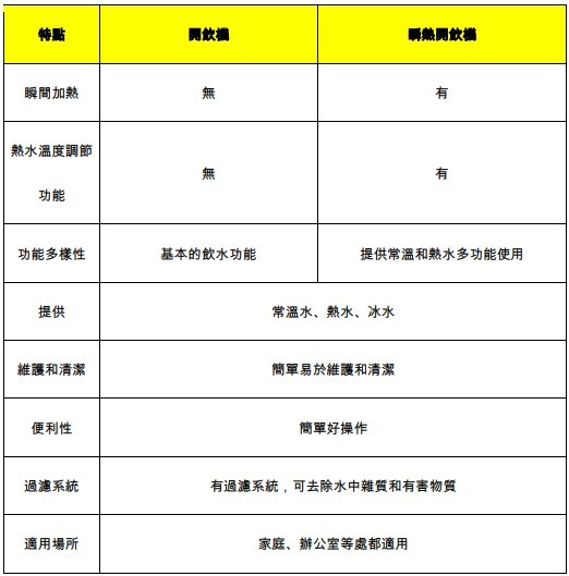 開飲機、瞬熱開飲機差異比較