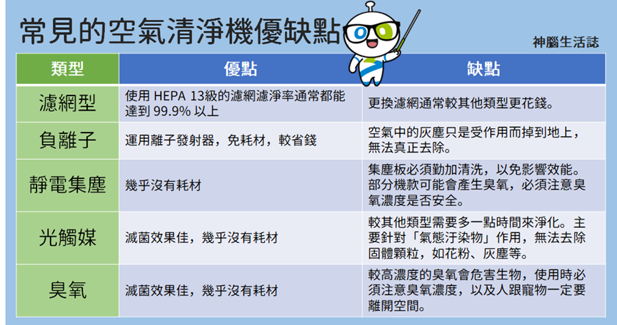 空氣清淨機類型的優缺點比較