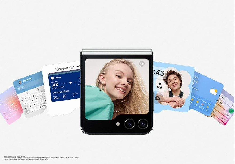 Galaxy Z Flip系列最為使用者津津樂道的設計,就是便捷的外螢幕功能,外側的1.9吋Super AMOLED封面螢幕,讓使用者不用打開手機就能撥打電話、掌握line/IG等訊息資訊、執行快速自拍,或是控制SmartThings情境小工具。