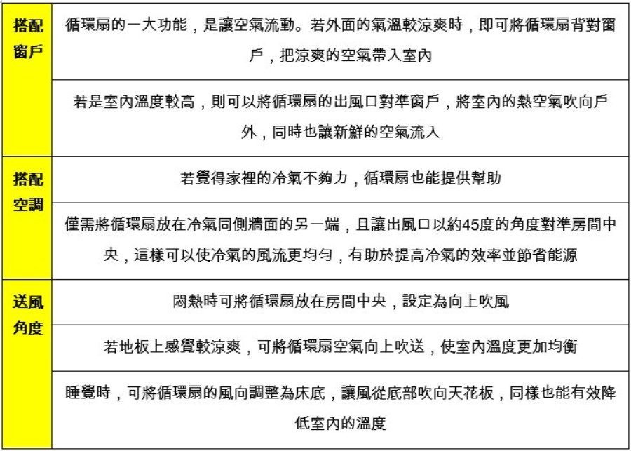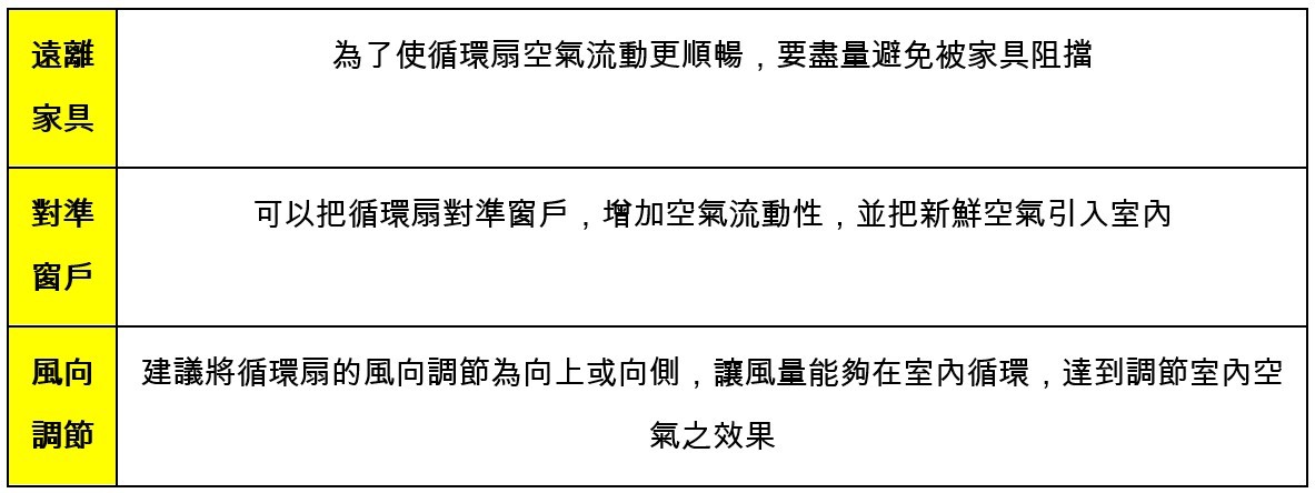 由於循環扇的擺放位置,將會直接影響其使用效能,故擺放在合適的位置,可以幫助循環扇更有效地使用與調節室內空氣流通效果。而循環扇位置擺放,可從以下3大面向說起: