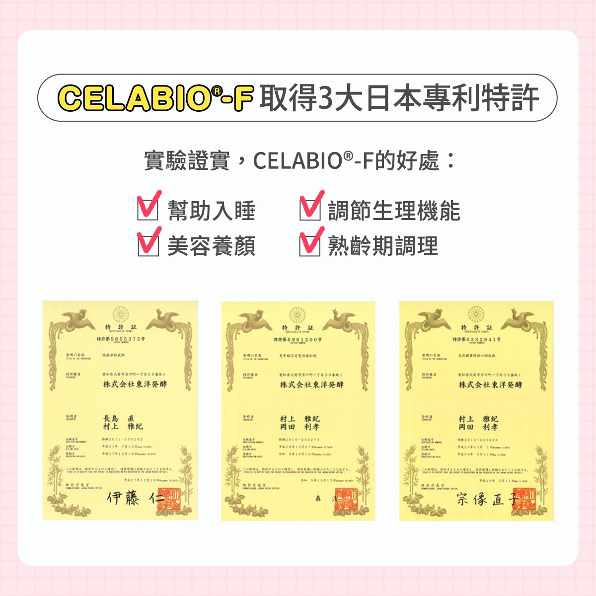 三大日本專利特許 好眠多酚「CELABIO®-F」為健康把關