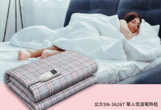 選擇電熱毯時,一定要符合安全認證,北方電器是國內電暖器領導品牌,旗下熱銷的SN-3626T單人恆溫電熱毯在品質、安全、售後保固上提供多重保障。產品通過國家BSMI商品安全認證,可設定1-8小時自動斷電、五段式溫度調整、恆溫省電以及安全自動斷電多重保護,還投保三千萬產品責任險,商品登錄北方官網的商品可再延長半年保固,選擇北方電熱毯是非常暖心的選擇,讓您安心度過冷颼颼的秋天。