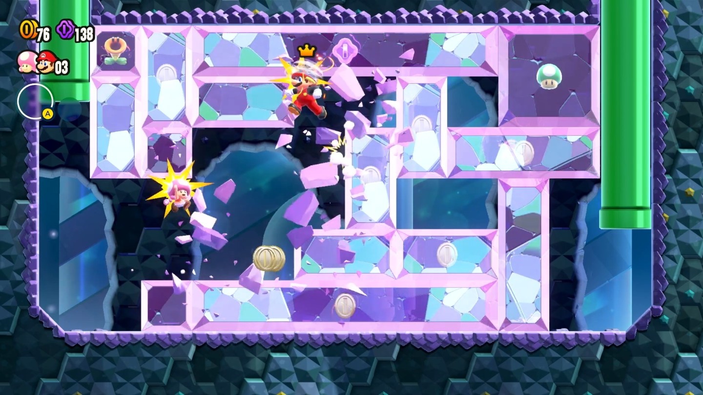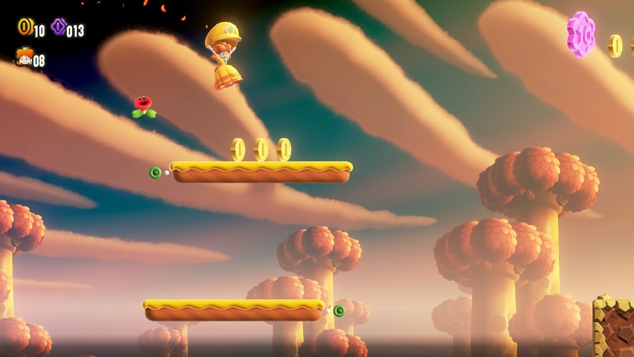 敲打磚塊敲出隱藏藤蔓、引誘敵人撞壞障礙物都只是基本,觸碰新登場的道具「驚奇花」後,關卡就會出現異想天開的巨大變化,像是水管會動起來、敵人成群出現、下起流星雨,或是變身成別的形態…… 每個關卡都有不一樣的驚喜和令人期待的要素在等待玩家。