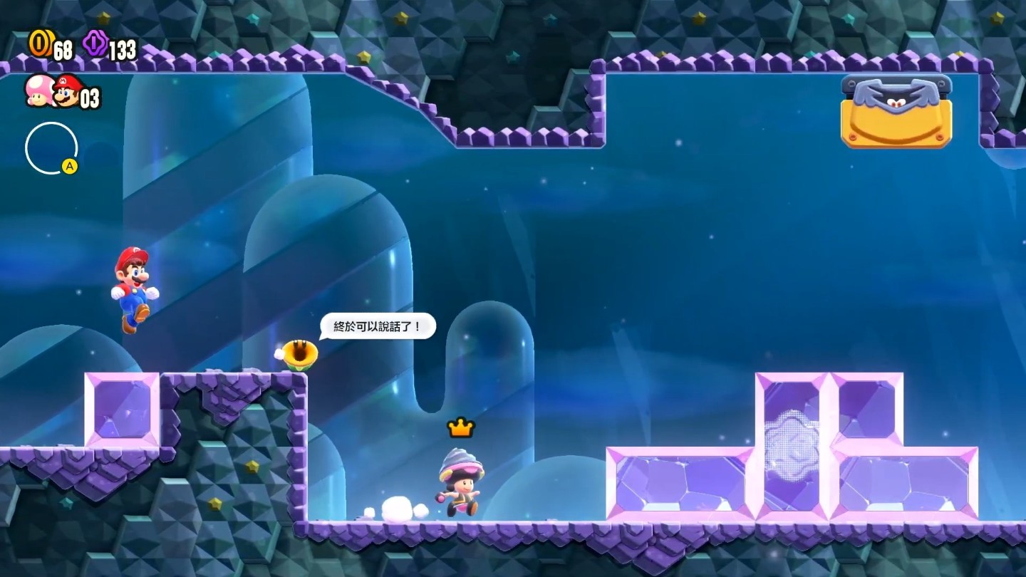 除此之外,關卡中還會出現向瑪利歐等人說話的「閒聊花花」,會說出各種有趣的話來讓冒險變得更熱鬧。閒聊花花有時還會藏在意想不到的地方,有一種尋找彩蛋般的樂趣。「閒聊花花」的聲音可以設定 ON / OFF,也可以選擇不同語言的配音,更重要的是對應繁體中文!熟悉的語音,相信能讓冒險過程更具親切感。