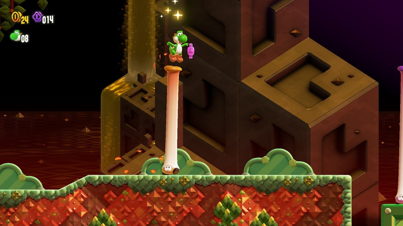 本作相當貼心的地方是,操作耀西和偷天兔時不會受到敵人或是尖刺的傷害(掉下去還是會陣亡),就算是不太擅長動作遊戲的初學者或是小朋友也可以放心遊玩。不過,無敵的代價就是無法利用道具變身,在某些特定場景可能還是不太便利。