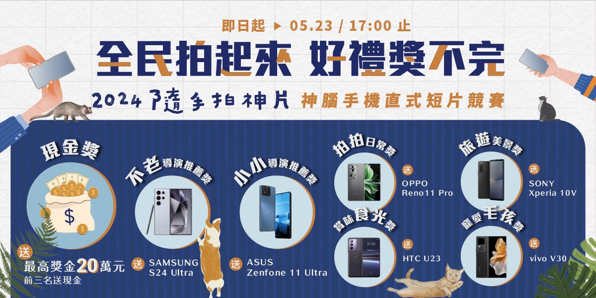 - 不老導演推薦獎1名:Samsung S24 Ultra智慧手機,獎牌一座