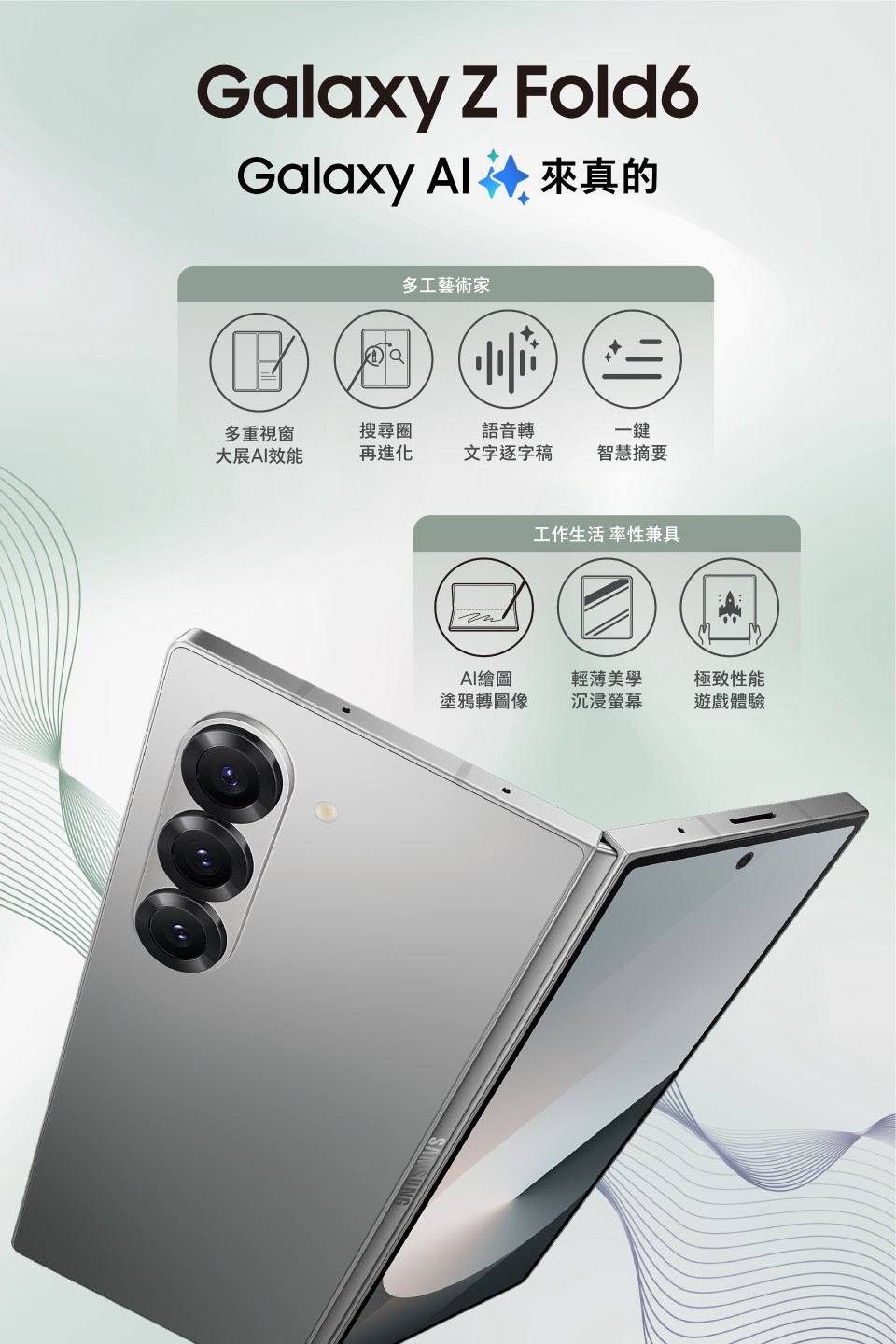 Galaxy Z Fold6 搭載 7.6 吋內頁螢幕,峰值亮度高達 2,600 尼特,可提供更出色的顯示效果。三星特別針對大螢幕強化了多項 AI 功能,以提升使用體驗。例如「筆記智慧助理」可協助用戶輕鬆記錄會議筆記,並提供翻譯、摘要及自動排版功能。而語音轉文字筆記助理功能,可將 Samsung Notes 中的錄音內容轉錄為文字、翻譯並摘要總結。