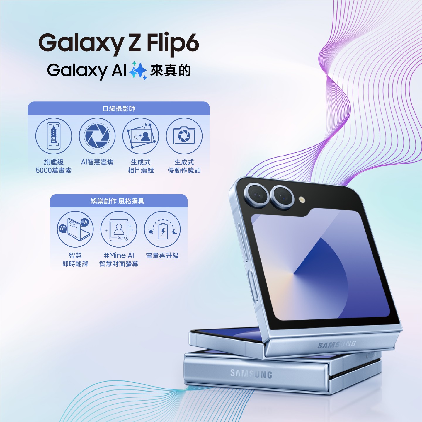 Galaxy Z Flip6 延續了前代產品的時尚外型,3.4 吋的 Super AMOLED 多功能封面螢幕再進化,不需翻開手機也能啟動 AI 輔助功能。例如「AI 智慧回覆建議」功能可分析近期訊息,提供客製化回覆內容,讓使用者能在忙碌時快速回覆訊息。