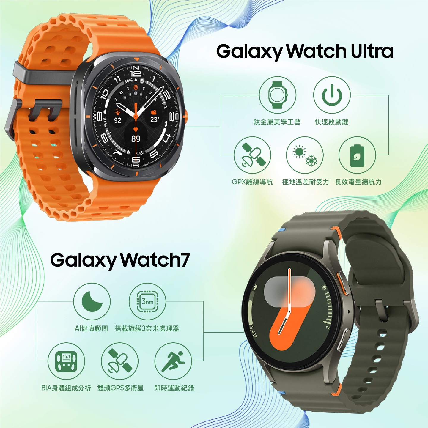 Galaxy Watch7 和 Galaxy Watch Ultra 則是三星最新推出的智慧手錶。Galaxy Watch7 提供全方位的健康監測功能,包括睡眠分析、心率監測、血壓監測等。它還首創 AGE 指數功能,可直接在腕間追蹤進階糖化終產物(AGE),為新陳代謝健康提供重要指標。