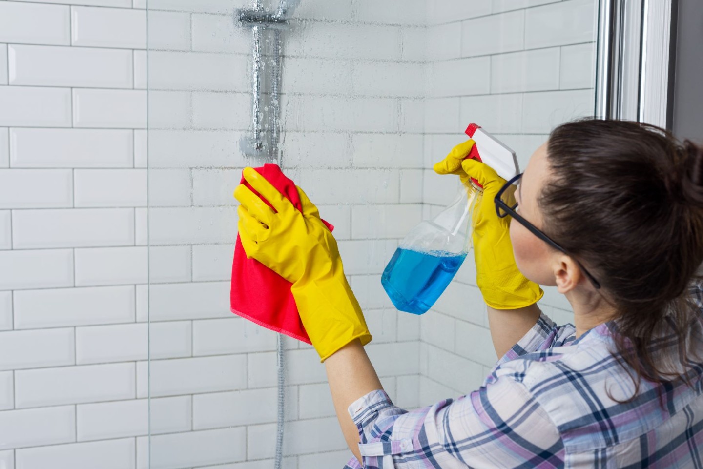 將清潔劑噴灑在瓷磚、玻璃或水龍頭上,靜置幾分鐘後用刷子擦拭,然後用清水沖洗乾淨。