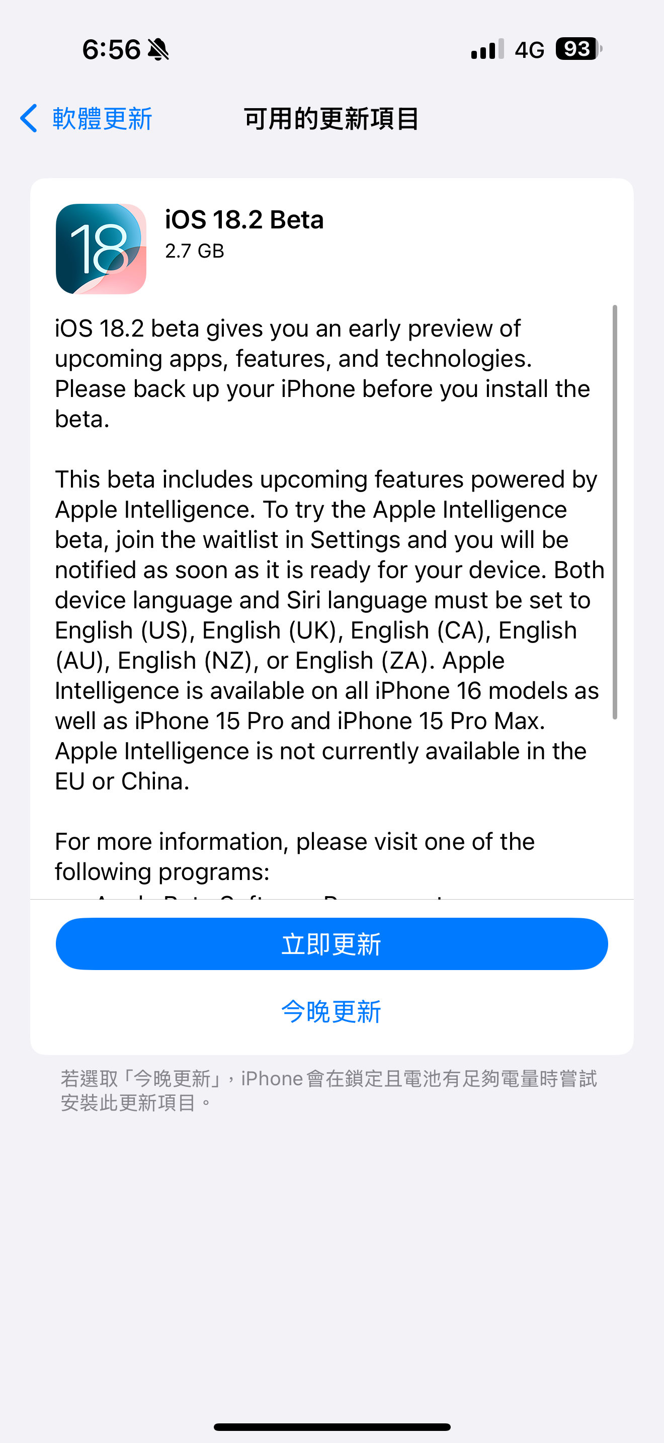 在裝置相容性方面,Apple Intelligence 需要 iPhone 15 Pro 或 iPhone 16 系列機型才能運作。若您使用 iPad 或 Mac,則需要搭載 A17 Pro 或 M 系列晶片的設備才能體驗。