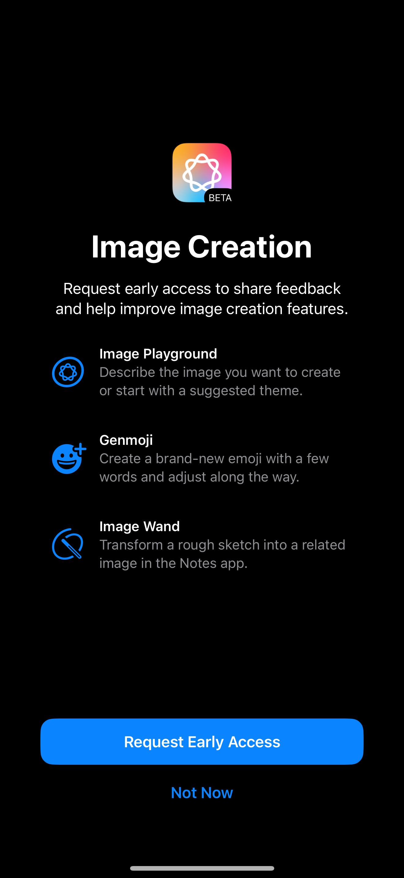 Apple 採用了分階段的測試策略,現有的 Apple Intelligence 測試用戶將自動獲得寫作工具、ChatGPT 整合和 Visual Intelligence 功能的使用權限。而想要體驗 Genmoji、Image Playground 和 Image Wand 這些新功能的用戶,則需要另外申請早期測試資格。一旦提出申請,系統會自動將您加入這三項功能的等待名單,並在功能開放時主動發送通知。