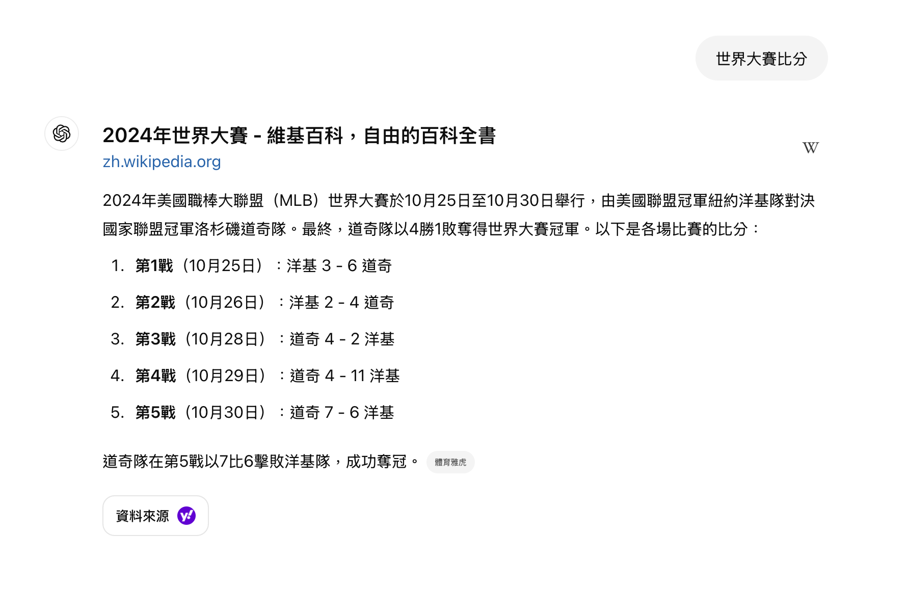 不過,OpenAI 的產品負責人 Fry 和《The Verge》解釋說,AI 產生「幻覺」原因之一就是沒有最新資訊(“Some amount of hallucinations come from just really not having access to the latest information.),現在有了即時搜尋功能,答案自然就能變得更準確。而且 OpenAI 和美聯社、路透社這些知名新聞社合作。每個回答的下方都會清楚標示資料來源,你可以點進去看原始新聞內容,自己再度查證資訊的正確性。這就像在網路上找資料時,你會特別留意是哪個網站發布的新聞一樣,現在 ChatGPT 幫你把關鍵資訊整理好,還帶你找到最原始的可靠來源!