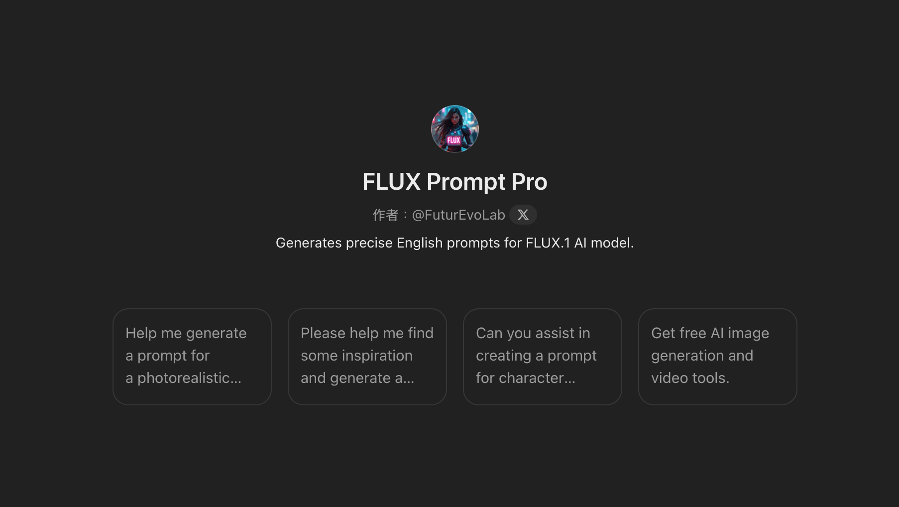 很多新手在開始玩 AI 繪圖時,最困擾的就是不知道該怎麼寫提示詞。別擔心!你可以先去找 ChatGPT,讓它幫你生成適合特定模型的提示詞。比如說想用 FLUX 模型,就可以使用「FLUX Prompt Pro」這類專門的提示詞 GPT。它們不只會幫你把想法轉換成模型看得懂的提示詞,還會給你一些創作建議。