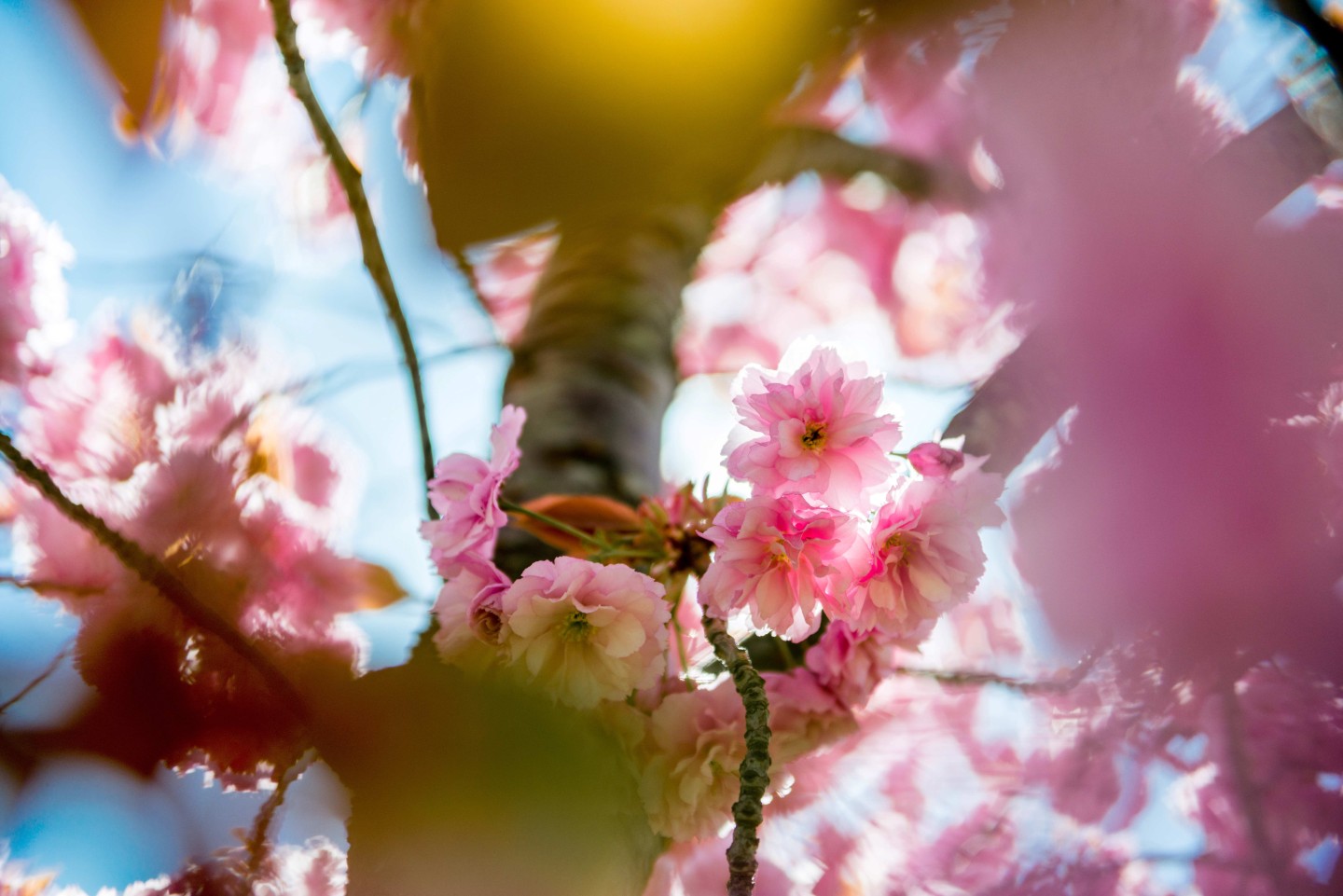 低角度仰拍:營造櫻花鋪天蓋地的效果。