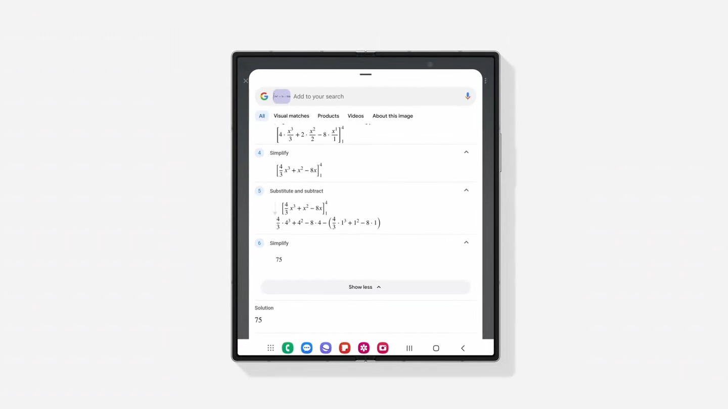 透過 Google 支援的「搜尋圈」功能,您只需簡單操作,就能獲得數學、化學、生物、物理等學科的說明、影片和網路搜尋結果。這不僅能協助您快速完成作業,還能讓您立即翻譯整個畫面的內容,無需切換應用程式,大幅提升學習和工作效率。