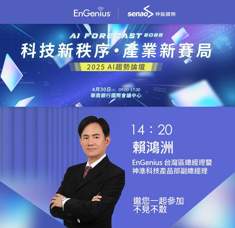 神準科技產品部副總經理暨EnGenius台灣區總經理賴鴻洲先生,從事科技產業超過三十年,帶領神準品牌團隊建立全新雲端網路設備管理解決方案,規劃雲端監視系統,著重雲端AI分析和告警系統的結合。他將在4月30日於華南銀行國際會議中心舉辦的「2025 AI趨勢論壇」下午場,以其深厚的產業經驗,深入剖析Cloud AI如何協助企業打造前所未有的智慧化應用。透過實際案例的演示影片,解釋如何透過Cloud AI,來減少人力成本、人力所做不到之處,將監視系統變成預警系統,讓企業能更廣泛應用,為未來生活帶來極大改變,想掌握AI最新資訊的民眾,可以至線上購票參與。