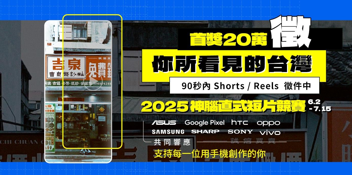 AI 讓影像創作變得更簡單、更多元並且充滿無限可能。神腦邀請全民拿起手中的智慧裝置記錄生活中的真實與感動,並參與「神腦90秒直式短片競賽」,首獎高達20萬元。今年攜手ASUS、Google、HTC、OPPO、SAMSUNG、SHARP、SONY、vivo 八大手機品牌共同響應,贊助旗艦攝影手機等獎品、還有人氣獎共多達40個獎項。徵件不限主題,只需將90秒內直式短片上傳至YouTube Shorts 或 Instagram Reels,活動只到7月15日截止,邀大家勇敢投出你的生活小短片!報名詳情請上神腦科技文教基金會官網。