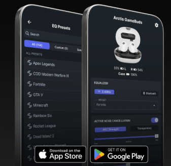 Arctis GameBuds 配備超過 100 種 PS5 音訊預設,並能在 iOS 和 Android 的 Arctis 小幫手 app 上選用。這些預設涵蓋了各種熱門遊戲,包括 Apex Legends、COD Modern Warfare III、Fortnite、GTA V、Minecraft 等,讓玩家能夠針對不同遊戲類型獲得最佳的音訊體驗。