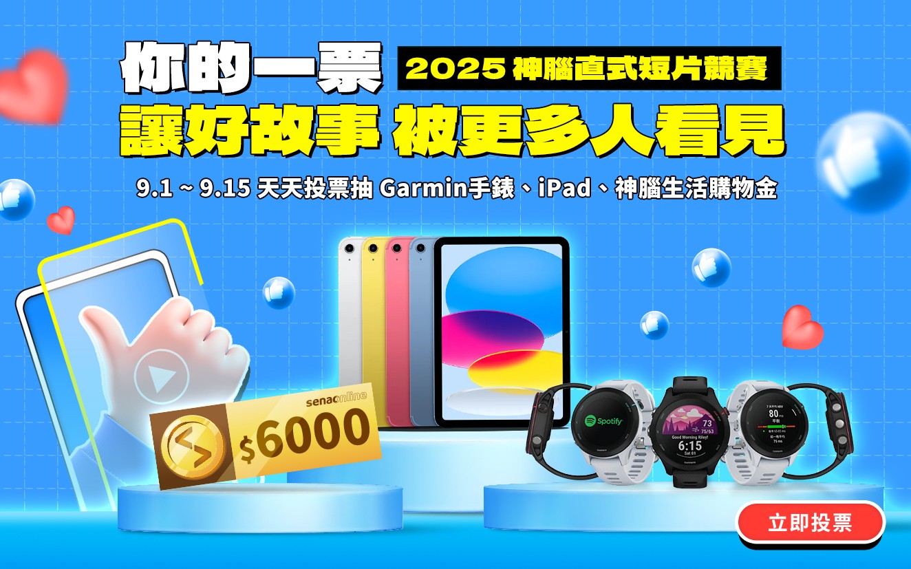 AI應用也讓影像創作更普及。神腦舉辦第6屆直式短片競賽,攜手 ASUS、Google、HTC、OPPO、SAMSUNG、SHARP、SONY、vivo八大手機品牌共同響應;賽事吸引9~78歲、近500位創作者投稿參與,匯聚台灣多元樣貌與生活脈動。為支持影像創作者、推廣優秀短影音,即日起啟動「網路人氣獎」票選:每人每天可投3票,投越多、中獎機率越高。9/15前完成投票,即可抽開學季精選好禮三選一:Garmin智慧手錶、iPad或神腦購物金6,000元,再抽1,000元神腦購物金20名,詳情請上神腦基金會活動網頁。