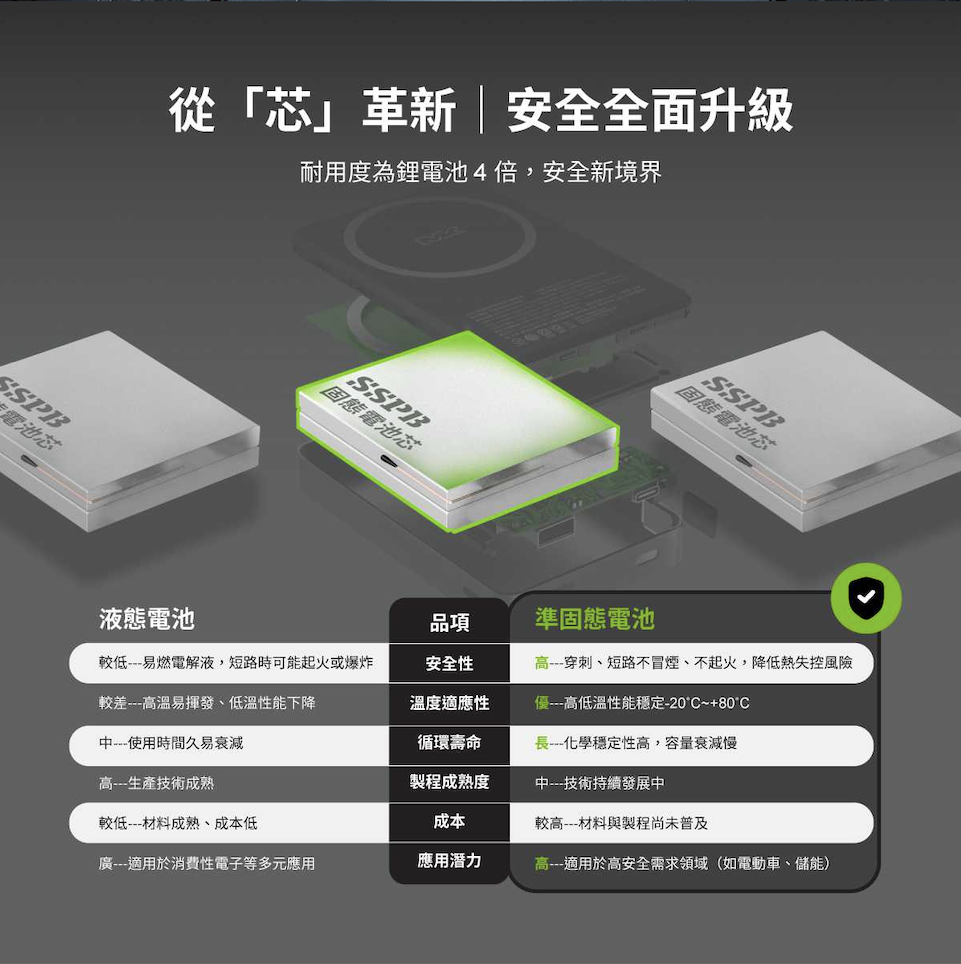 - 有了準固態技術,你不必再擔心行動電源成為危險來源。