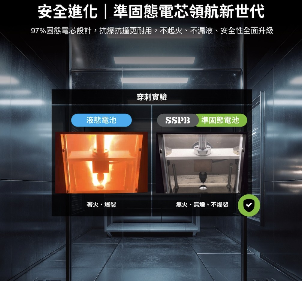97% 固態電解質,抗穿刺、不爆炸、不燃燒,徹底解決消費者最擔心的安全疑慮。