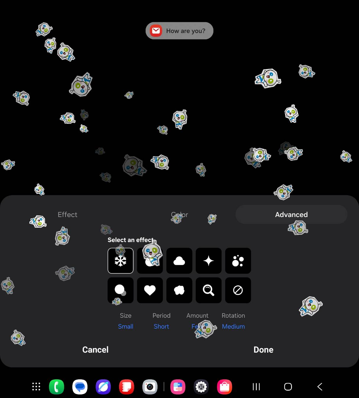 而在「進階」設定中,還有更多讓人驚喜的動畫效果選項。你可以讓通知圖案像雪花一樣緩緩飄落、像雨滴般輕輕落下,或是像雲朵慢慢飄過螢幕。這些動態效果不僅讓通知變得更加生動有趣,也為手機使用體驗增添了個人化風格。