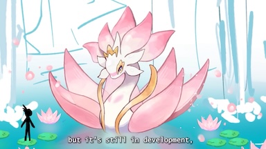 | 粉色蓮花、白色身軀的龍型帕魯 | 外型優雅,就概念圖的對比來看可能是大型帕魯 |