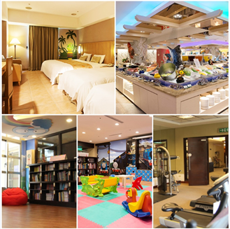 飯店內有多種設施,如SPA、男女三溫暖、健身房、兒童故事屋、兒童遊戲室,還提供中、西、日式三種不同精緻美饌,無論是美食、遊樂、住宿、休閒,讓您一次豐富的完美旅程。