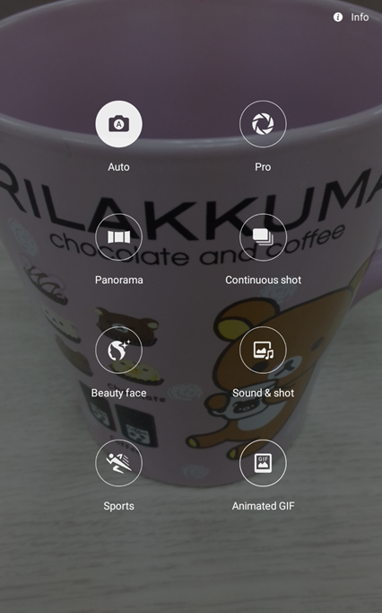 Tab J內建相機多種拍攝模式,包括了全景、美肌、連續快拍、動態GIF…等效果,讓你依照當下的環境,選擇合適的拍攝模式。