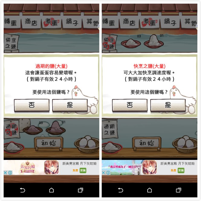 ▲ 不同的蛋蛋需要水煮的時間也不一樣,分為15 分、30 分、1 小時、3 小時、6 小時、9 小時,點選畫面空白處,可以顯示還剩下的水煮時間,不過有時候不小心煮太久,蛋蛋還會臭掉喔!(是煮鐵蛋嗎?為什麼一顆蛋要煮9小時啊…)