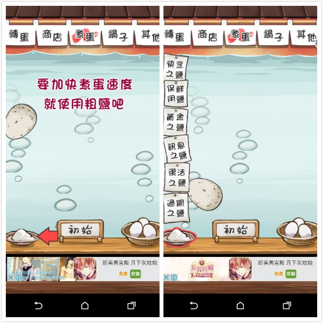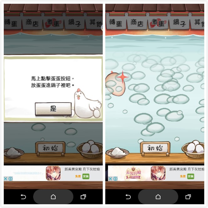 ▲ 遊戲的目的只有一個,那就是做水煮蛋!!!一開始選擇要煮的雞蛋後,就可以將雞蛋丟入到熱水裡面,接下來只要等待到時間到就好了。