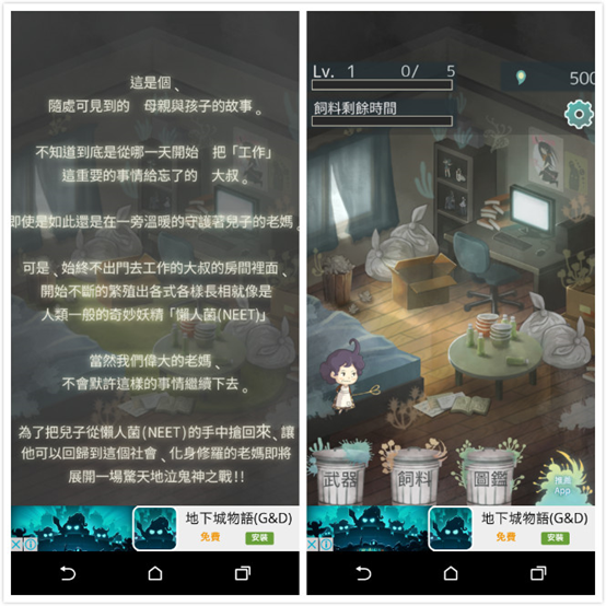明明都已經成年,還整天不去找工作,只想依賴爸媽老本過活的人,就會被稱為啃老族~(兒:我不是家裡蹲,我是高等遊民!!)最近有一款手機遊戲「極度暴怒老媽物語」,讓你在遊戲裡扮演一位偉大的老媽,想盡辦法打敗懶人菌,將魯蛇兒子從廢材生活中拯救出來,讓想當啃老族的人玩了會怕!