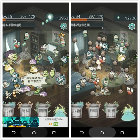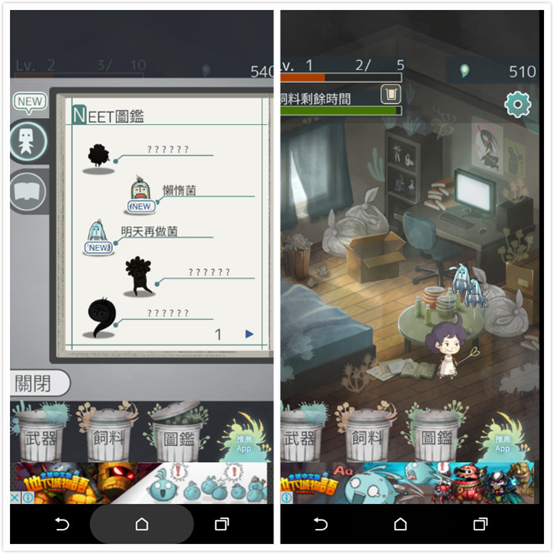 雖然這款APP歸類為養成遊戲,不過只要撒上飼料就可以放著玩,不用全程守在手機前,也能自動吸引懶人菌出現,然後一次賺取點數!隨著等級的提升,還可以捕捉超稀有的懶人菌,以及收集兒子超廢材的魯蛇日記,是一款適合不想工作的人玩得勵志遊戲(應該吧...)