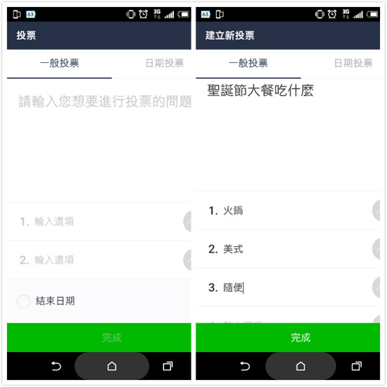 ▲ 這時可以看到有『一般投票』、『日期投票』可以選擇。如果想輸入多種選項(如菜色、地點),就選擇一般投票;如果純粹要找哪一天做什麼事,就可以用日期投票。
