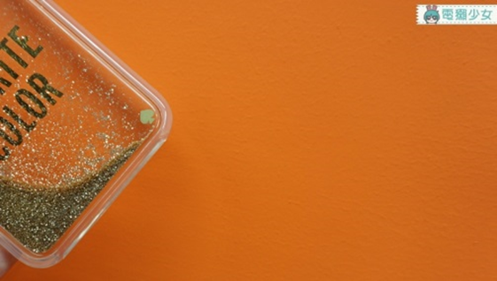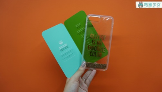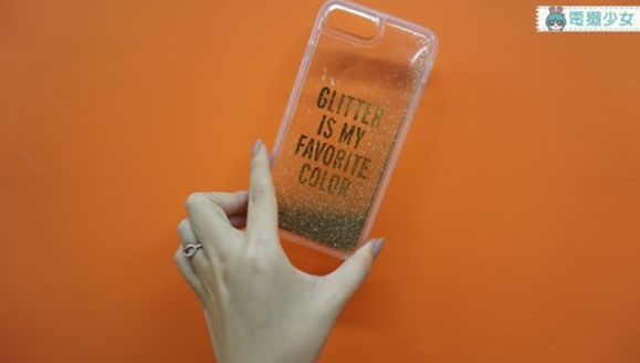 ▲剛剛放的照片讓手機殼看起來就只是個透明塑膠殼,但搖晃之後,就會看到裡面夾層的金粉慢慢地飄下來,先是覆蓋了整個殼面,最後慢慢露出原本透明的模樣,果然「Glitter is my favorite color」呀~~~~