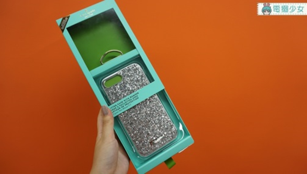 ▲首先來開箱銀色星光亮片保護盒款吧!詩伊一開始還有點遲疑,想說這麼漂亮的包裝,難道要用刀片割開嗎,後來發現包裝下方有一條短短的帶子,往下拉之後,漂亮的殼就順順的出現囉~