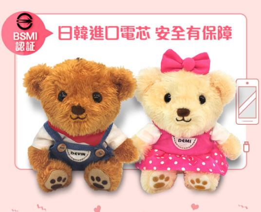 ▲ 黏DD熊行動電源,台灣製造且通過BSMI認證,吊環設計變身可愛吊飾!