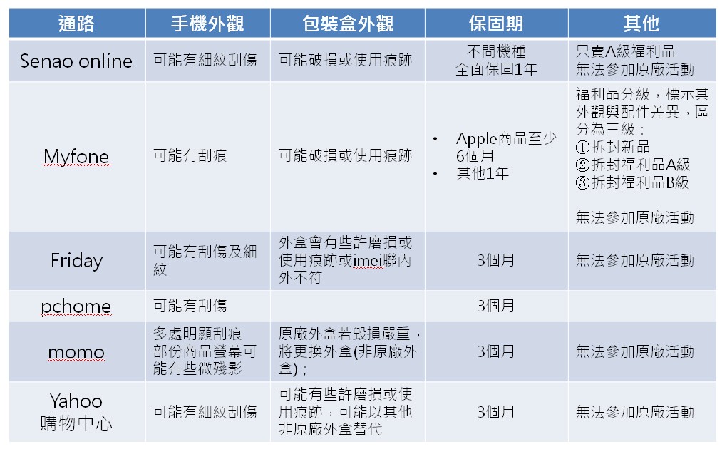 ▲福利機通常為曾在門市的展示機、消費者退換的不良新品、活動用品、公關客訴件…等已拆封產品,經過原廠檢測與整理程序,再送回門市銷售的整新機。
