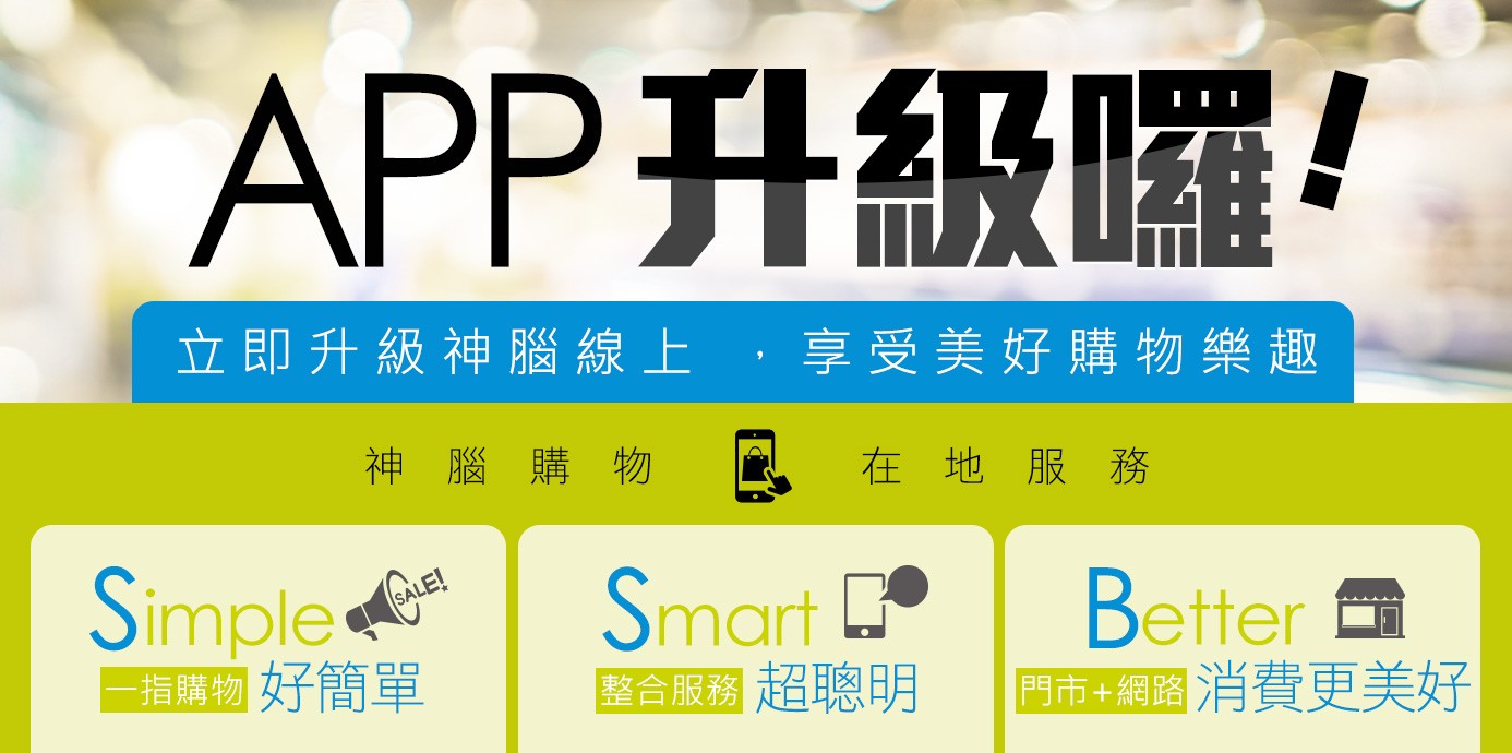 台灣最專業的通訊數位通路搭配網購APP「神腦線上」,全台門市,實機體驗,還能讓您隨時享受線上/線下24小時不斷線的數位與生活商品購物服務,精采您的數位享樂生活,趕快去下載神腦線上APP吧!