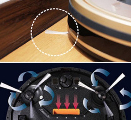 THOMSON智慧型掃地機器人最厲害一點為集掃地、吸塵、濕拖、乾擦四大功能於一身。首先最基本的掃地作業,由於採用加長6cm雙邊刷設計,相較於傳統掃地機器人單邊設計,清掃覆蓋面可增加兩成,搭配橡膠塵檔條設計能迅速將掃入的灰塵集中收納,讓清潔範圍更大無死角。