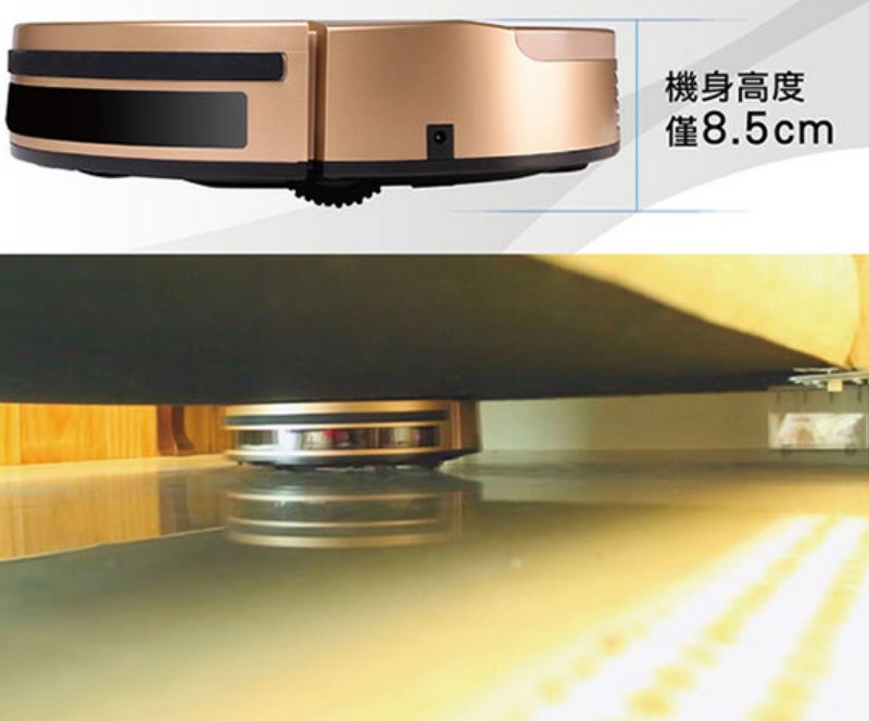 ▲機身高度僅8.2cm,搭配可輕鬆跨越2cm障礙、或15度坡面的越野強化胎輪,無論是藏在在沙發或床舖底下的紙乾屑、毛髮或飯粒都無所遁形。