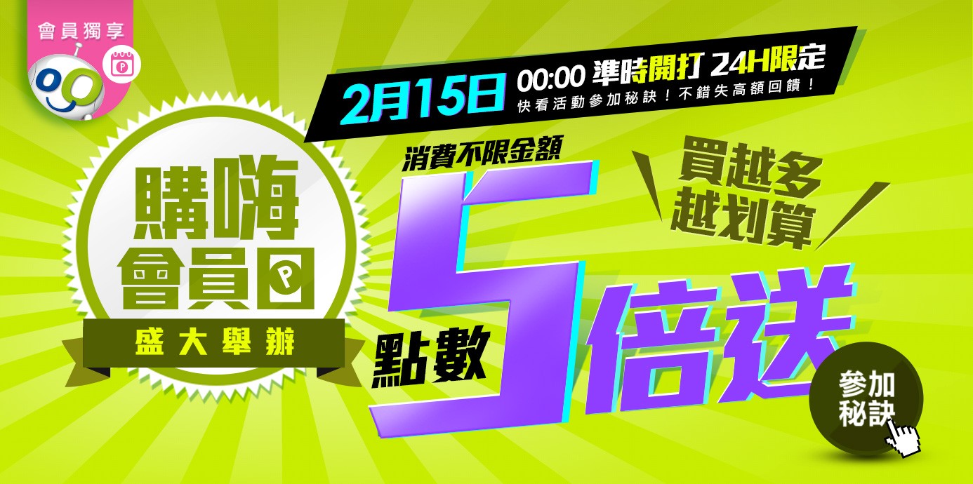 活動內容:只要在會員日當天消費,就送你消費金額5倍點數,舉例來說,若你在神腦線上購買掃地機器人付款1萬元,就送你1萬*5=5萬點,點數獲得後可以折抵250元的消費,是不是很划算呢?