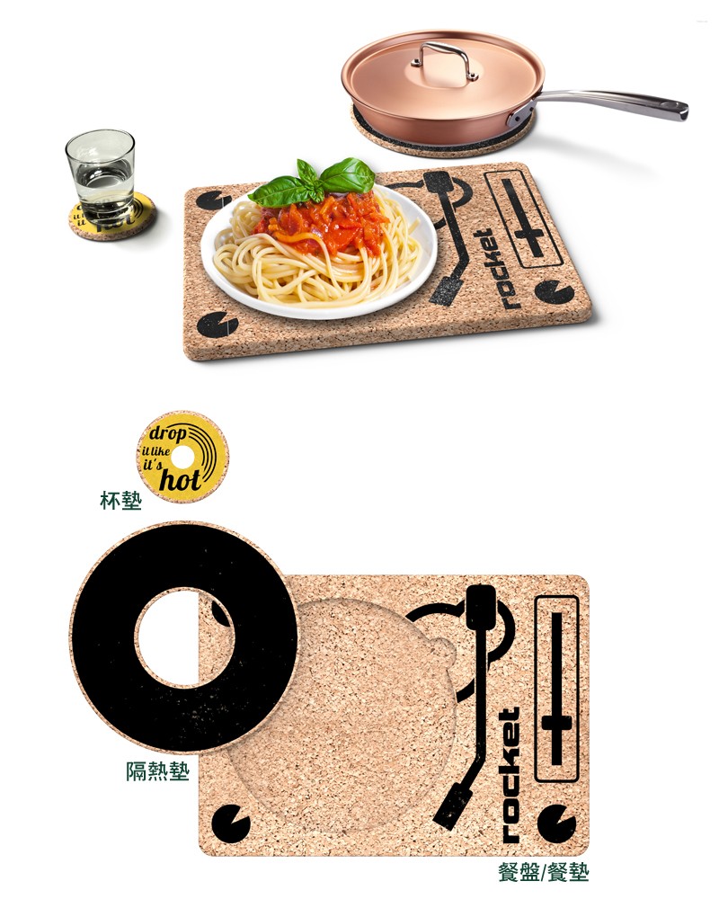 只要運用一點小巧思,生活也能變得更加豐富有變化!具有創意設計的唱盤造型餐墊,軟木的材質可放置鍋子等,還有隔熱的效果,不但外觀好看也很實用,不用的時候還能當作裝飾做擺設。