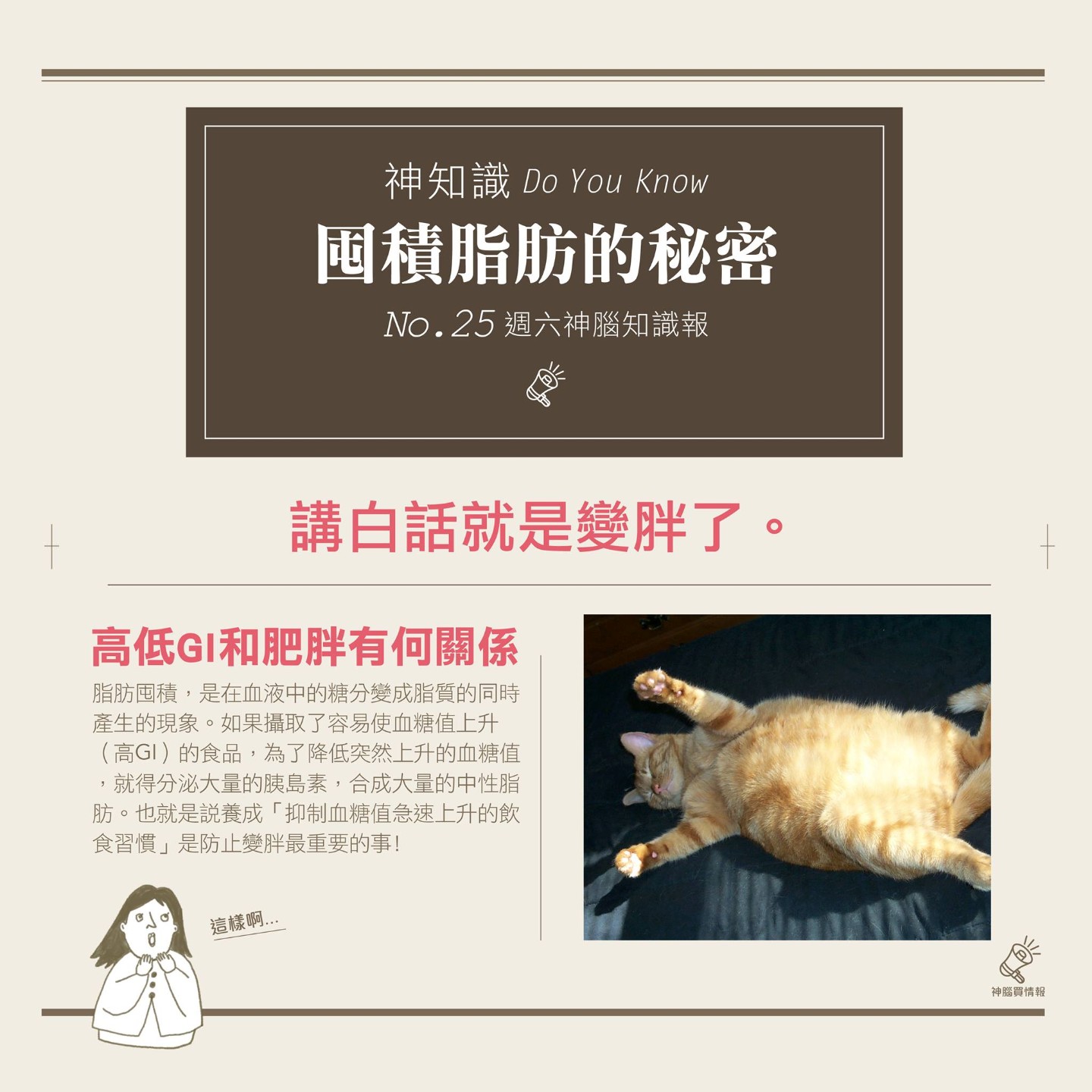 小時候胖不是胖,長大的胖才是真.的.胖!好哀傷:( 神小編長時間坐在辦公室腰間也是囤積一圈游泳圈,倒底是什麼原因造成肥胖的呢?到底是什麼神奇的力量造成這項命運一般的迴圈......(默:當然自己拼命吃是最大的原因)
