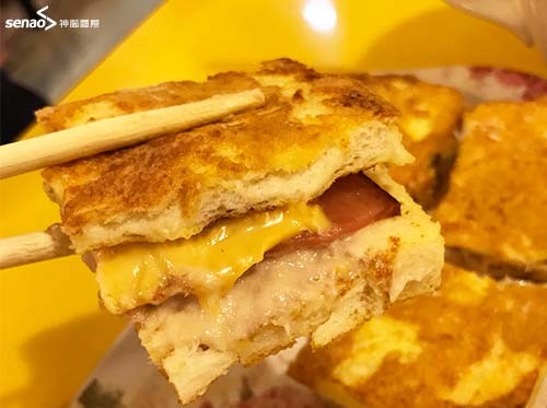唸起來像外星語言,其實是由香酥蛋餅+夠味火腿+濃濃起士組合而成